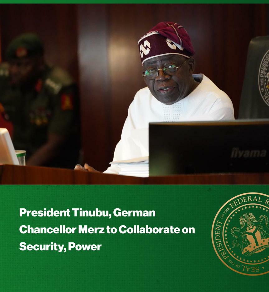 PRESIDENT TINUBU, GERMAN CHANCELLOR MERZ TO COLLABORATE ON SECURITY, POWER