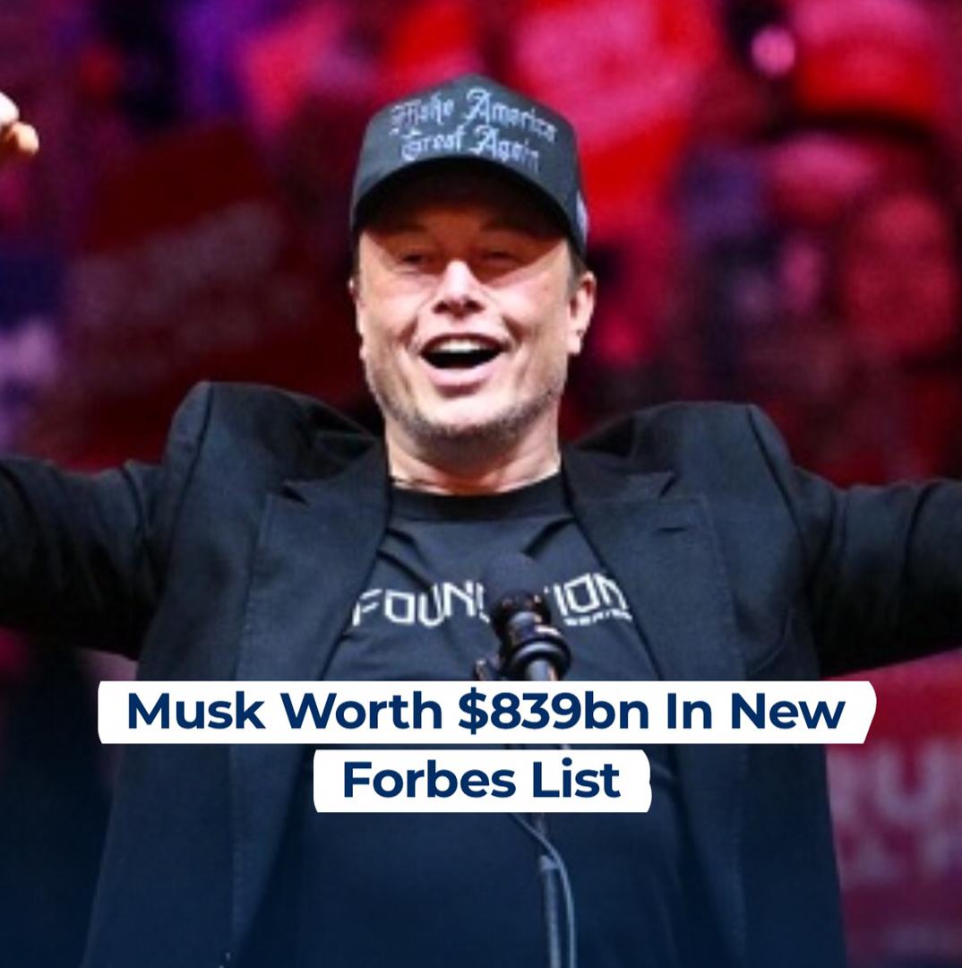 Musk Tops Forbes Billionaires List With Record $839bn Fortune
