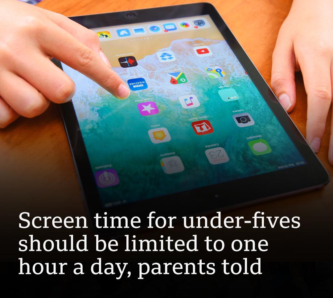 New government guidance recommends limited screen time for young children The UK government has issued new guidance advising that children under five should have no more than one hour of screen time per day, and that children under the age of two should not be left to use screens alone.