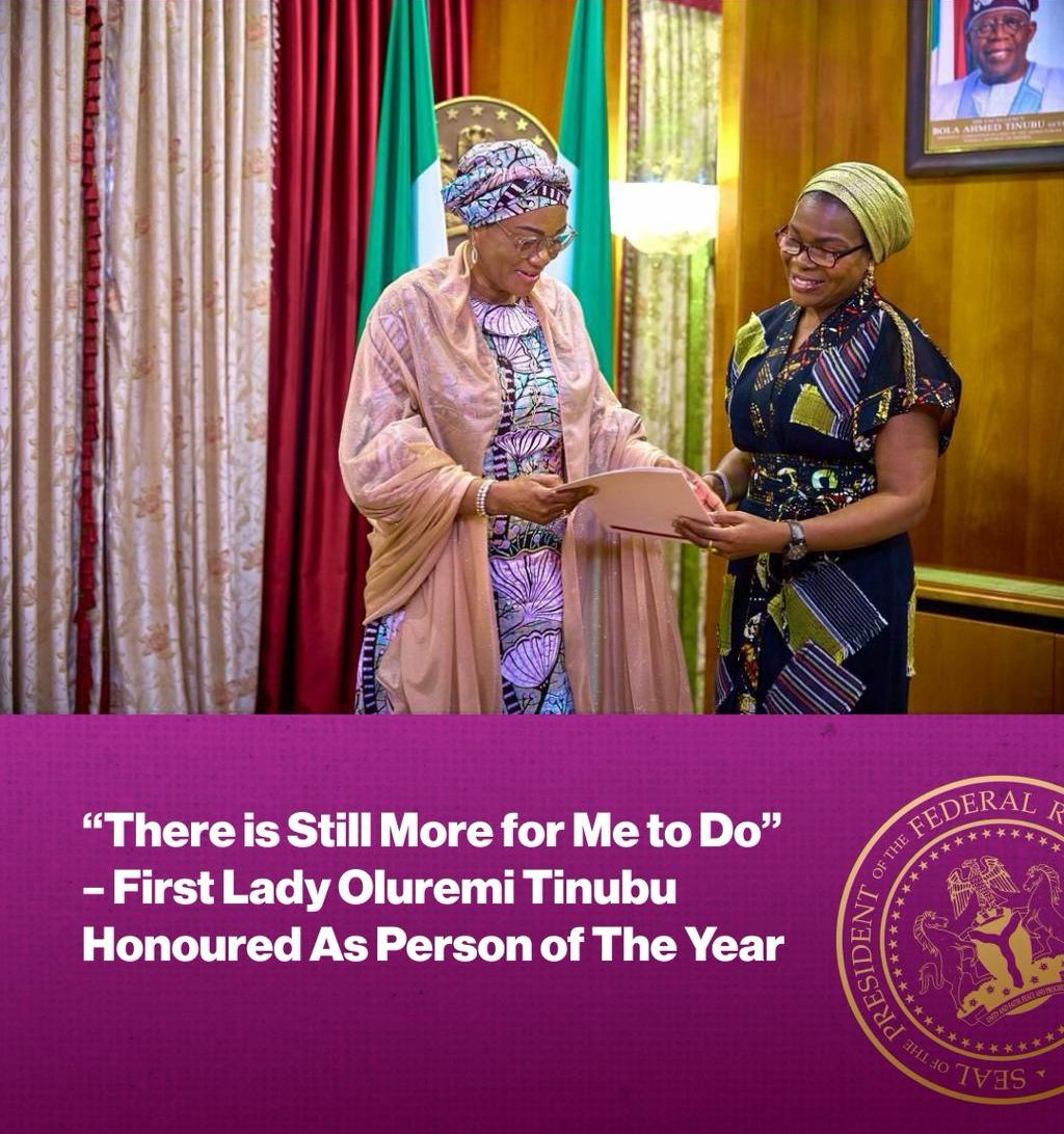 Nigeria’s First Lady, Senator Oluremi Tinubu, has reaffirmed her commitment to national service, declaring that despite recent recognitions she still has “more to do” for the Nigerian people. The pledge came as she formally received notification of being named Person of the Year 2025 by Leadership Newspapers.