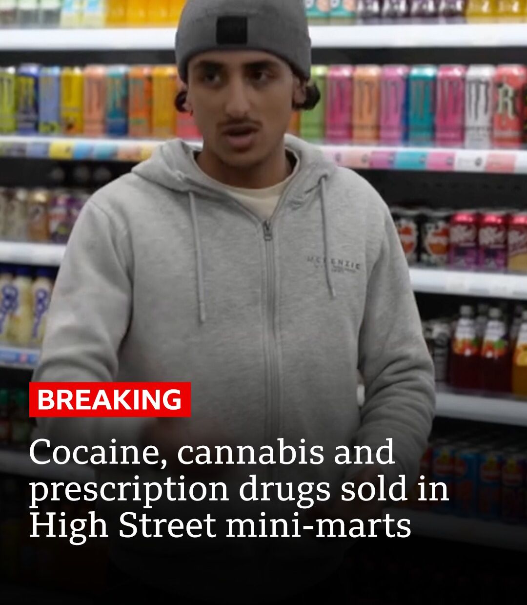 SECRET FILMING EXPOSES DRUG SALES IN UK HIGH STREET MINI MARTS An undercover investigation by the BBC has revealed that cocaine, cannabis and prescription drugs are being openly sold in some mini-marts operating on UK High Streets, raising serious concerns about organised crime and regulatory enforcement, based on secret filming carried out by journalists, uncovered evidence suggesting that certain convenience stores are acting as fronts for illegal drug distribution across parts of the United Kingdom.According to the report, undercover reporters were able to purchase or witness the sale of controlled substances including cocaine, cannabis and prescription-only medication inside several mini-mart shops. The secret recordings indicate that drugs were allegedly being sold discreetly alongside everyday retail goods, allowing illegal activity to operate in plain sight within busy town centres. The investigation suggests that some of the mini-marts may be linked to wider criminal networks exploiting gaps in licensing and enforcement systems. Authorities and community leaders have raised alarms over the rapid increase of such shops on UK High Streets, with fears that criminal groups are using them to distribute drugs and other illicit products while appearing as legitimate businesses. Residents and local officials say the presence of suspected drug-selling outlets is contributing to rising safety concerns, antisocial behaviour and pressure on local policing resources. Law-enforcement agencies are expected to review the findings as part of broader efforts to tackle drug trafficking and organised crime operating in retail environments. The revelations have renewed calls for tighter inspections, stricter licensing checks and improved coordination between local councils and police forces to prevent criminal exploitation of retail premises.