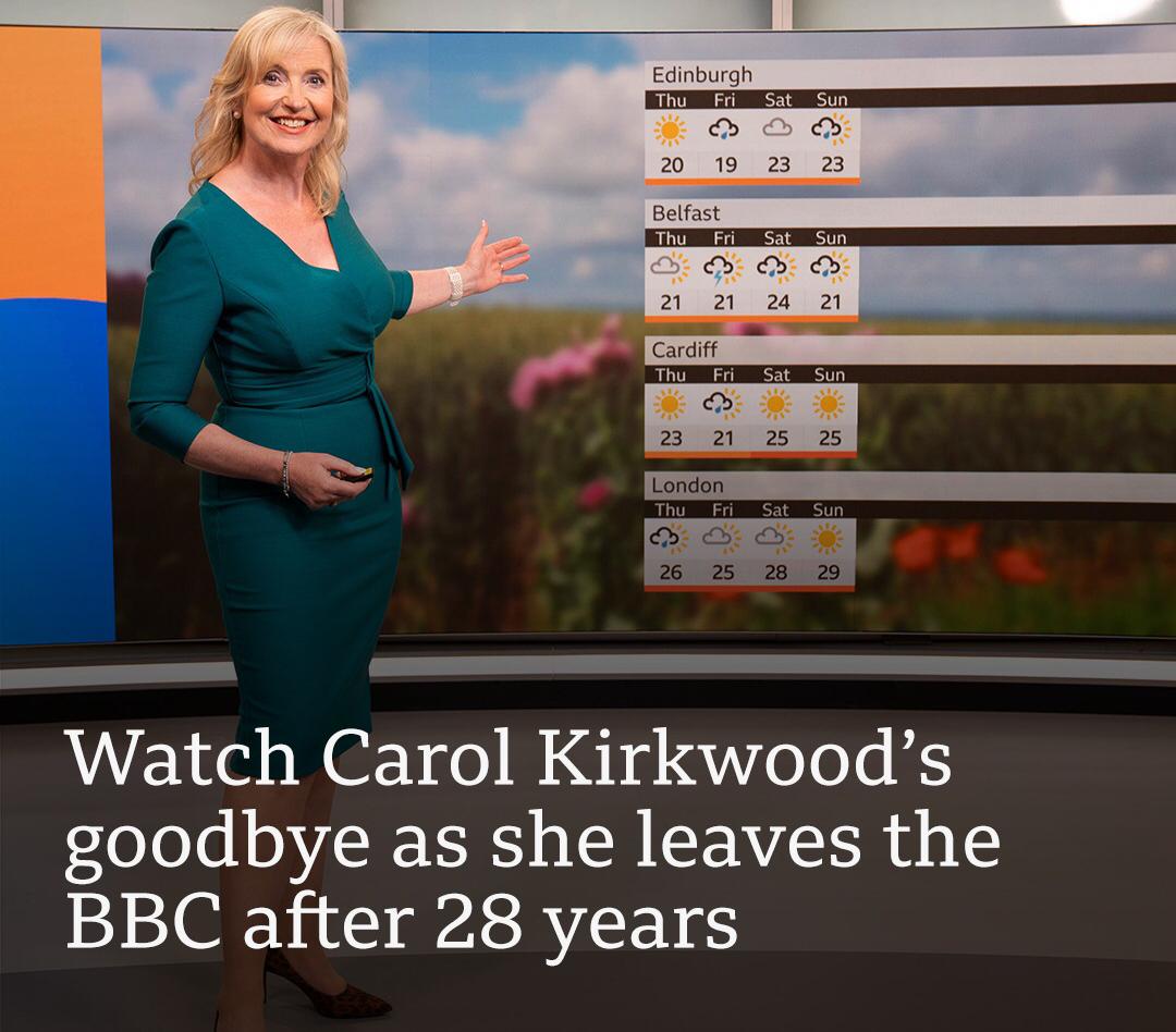 “Thank You for Letting Me Be a Part of Your Lives” Carol Kirkwood Bids Emotional Farewell to BBC Breakfast Veteran weather presenter Carol Kirkwood has delivered an emotional goodbye to viewers after presenting her final weather segment on BBC Breakfast, bringing an end to a long and celebrated chapter in British morning television. Kirkwood, a familiar and trusted face for millions of viewers across the UK, signed off with heartfelt words, thanking audiences for their loyalty and support over the year Having joined the BBC’s flagship morning programme years ago, Kirkwood became widely known for her engaging delivery, warmth, and professionalism, helping viewers start their day informed about the weather. Her tenure on BBC made her one of the most recognizable weather presenters in the country, earning admiration from both audiences and colleagues alike.