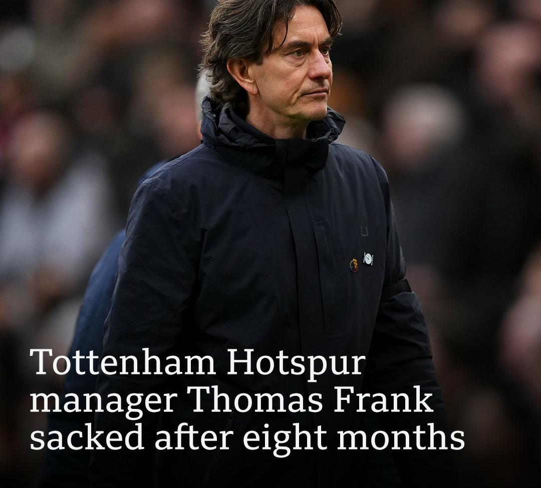 LONDON Tottenham Hotspur have sacked head coach Thomas Frank after just under eight months in charge of the Premier League club, following a run of poor results that has left the men’s first team perilously close to the relegation zone.