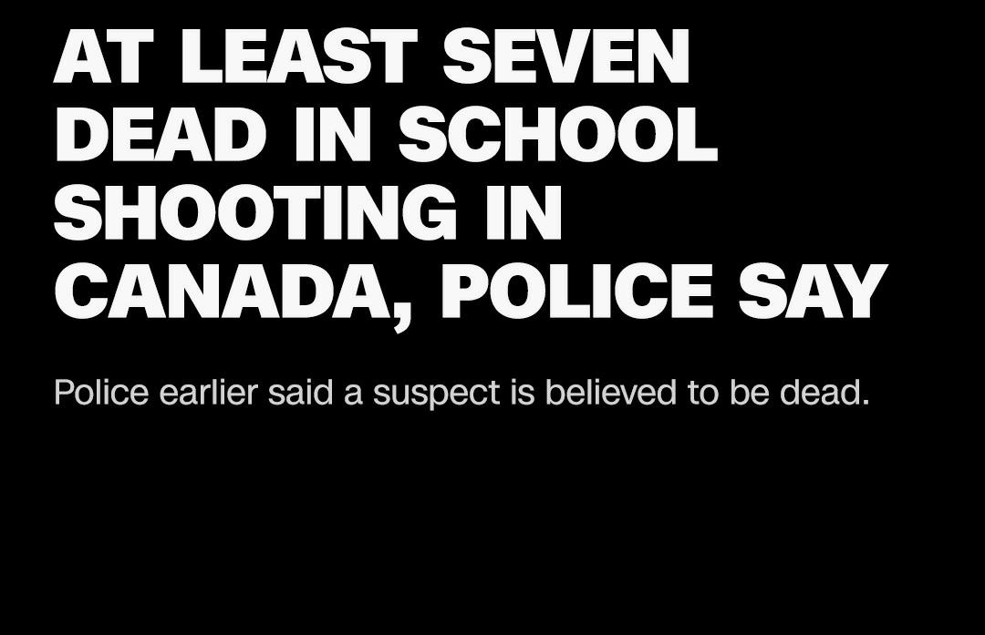 Initial paramedics and RCMP reports describe the suspect as female, and an emergency alert sent to residents described a brown-haired woman wearing a dress, but officials have refrained from confirming any further details. Motive remains unclear, and investigators are working to determine how the victims were connected to the shooter. Prime Minister Mark Carney expressed profound sorrow, stating he was “devastated” and would postpone planned travel in response to the tragedy. British Columbia Premier David Eby called the event “an unimaginable tragedy” and pledged support for the stricken community. Local officials emphasized the difficulty of the loss in a small town where many residents knew one another personally.School shootings are extremely rare in Canada, especially on this scale. The last incident of comparable magnitude was the Nova Scotia rampage of 2020, which also resulted in significant loss of life. The attack has sparked renewed discussion on gun violence, public safety, and support for trauma-affected communities in a country that has historically lower rates of mass shootings compared with some other nations.The high school and local elementary school will remain closed for the week while counseling and support services are made available.