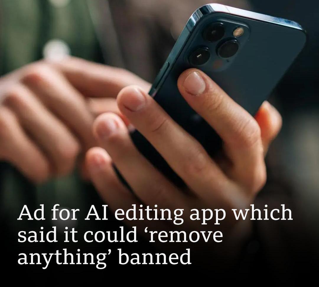 UK watchdog bans AI editing advert over “removing clothing” implication An advert for a video and image editing tool that implied users could digitally remove a woman’s clothing has been banned by the UK’s advertising regulator.