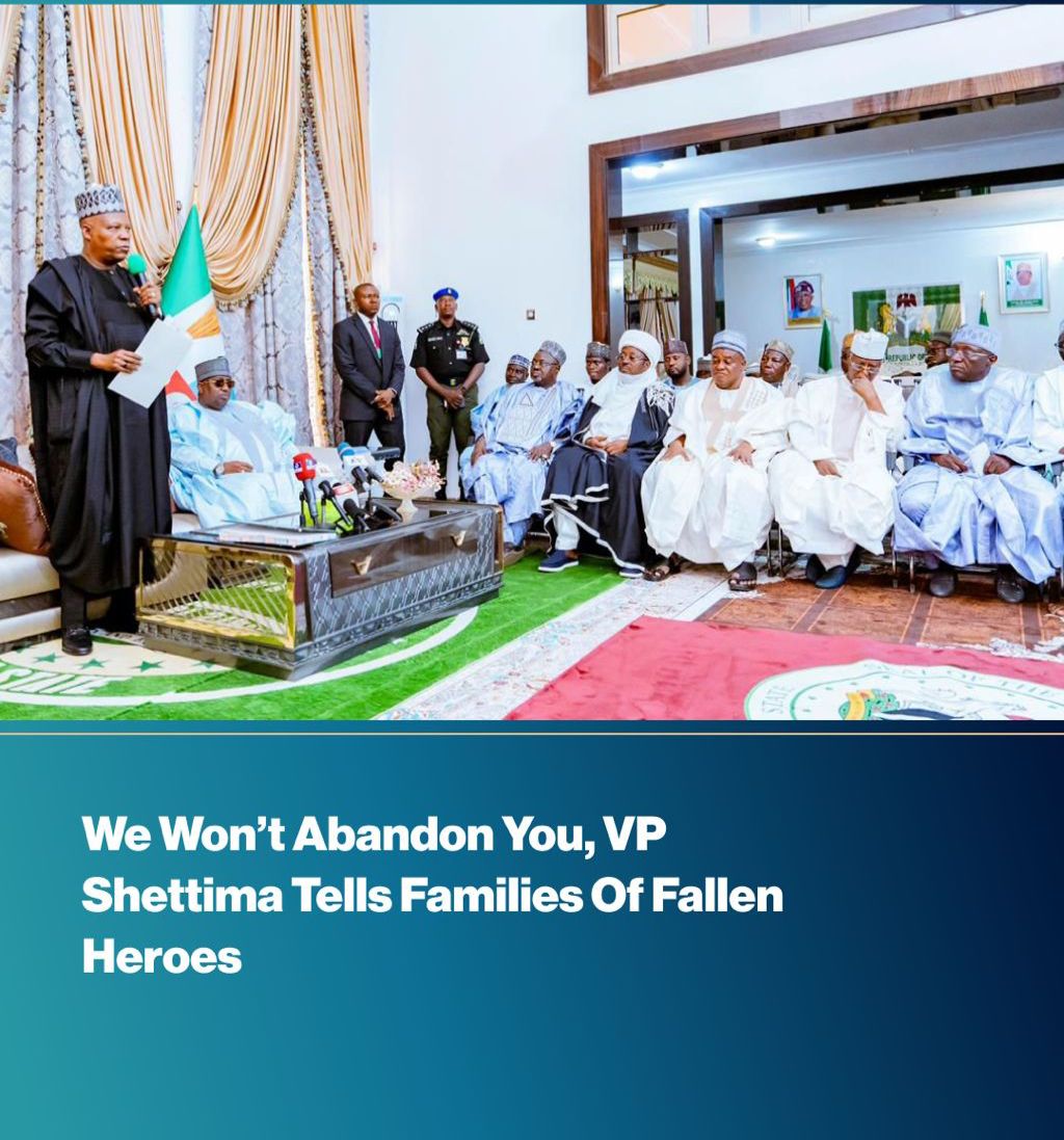 ‘We won’t abandon you,’ VP Shettima tells families of fallen heroes